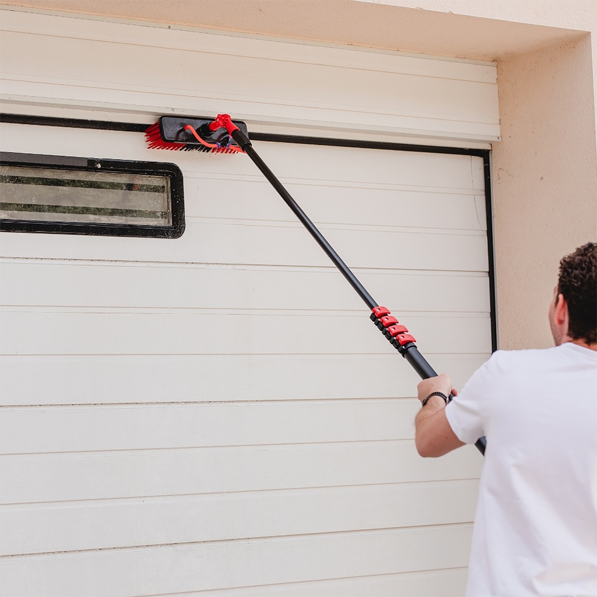 Niet alleen binnen, maar ook aan de buitenkant heeft uw huis soms een schoonmaakbeurt nodig. Heeft u last van groene aanslag op muren of padden door het weer? Dankzij de uitschuifbare waterborstel heeft u deze in een handomdraai weer schoon. De wasborstel is ideaal voor muren en gevels, dakpannen, wandelpaden en zelfs zonnepanelen.