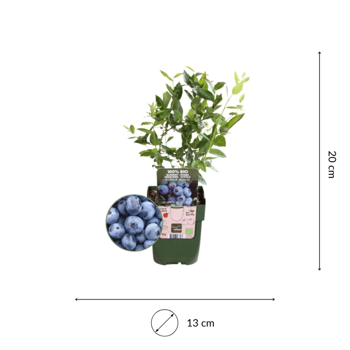 In het voorjaar verschijnen er kleine witte tot lichtroze bloemetjes die uw tuin een zachte uitstraling geven. Daarna ontwikkelen zich in de zomer de bekende blauwe bessen. Zo geniet u niet alleen van de oogst, maar ook van een plant die het hele seizoen aantrekkelijk blijft.